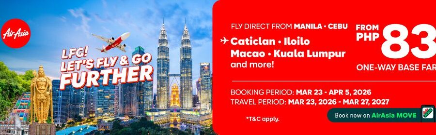 Fly further with AirAsia this summer! Book flights to select AirAsia destinations for as low as Php83 one-way base fare.